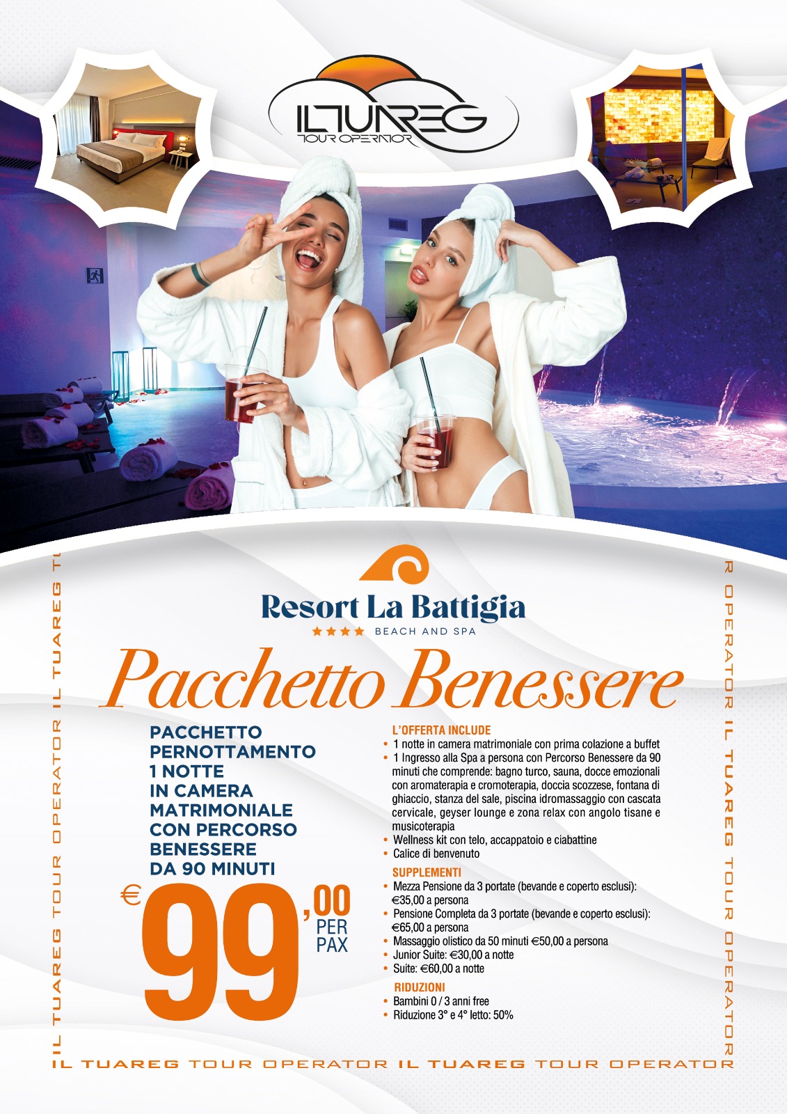 Essa comprende un percorso benessere ricco e articolato, con piscina riscaldata, idromassaggio, sauna e bagno turco, doccia scozzese, doccia emozionale, cascata di ghiaccio, stanza del sale himalayano e grotta del sale.