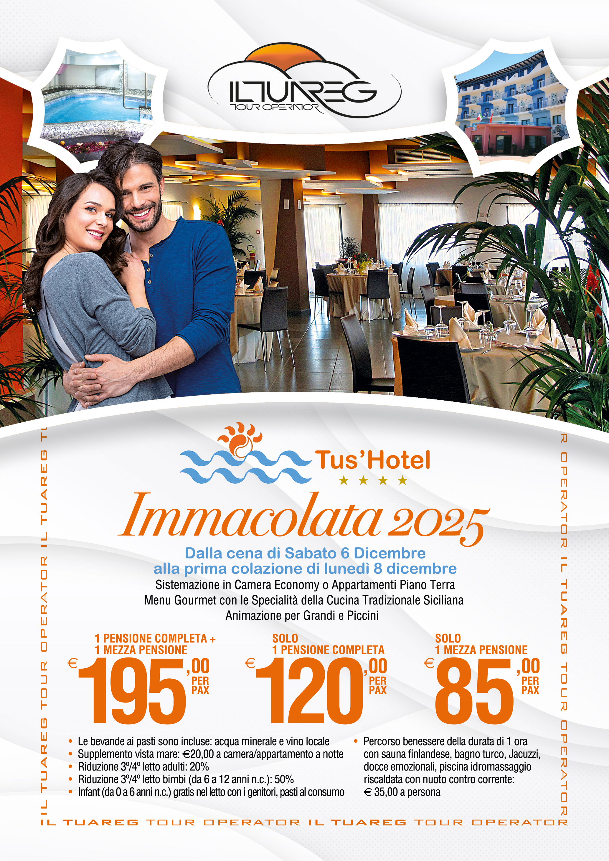 A Castel di Tusa, lungo la costa settentrionale della Sicilia, dove il fascino dell’archeologia di Halaesa e le acque del tirreno si incontrano, sorge oggi il Tus’Hotel. Incastonato tra il mare e la collina, il Tus’Hotel offre ai suoi ospiti una sintesi di storia, cultura, tradizione e modernità. Il suo prospetto moderno, su uno sfondo classico e naturale, racchiude l’eleganza dei migliori servizi alberghieri (piscina, centro benessere, alta gastronomia…) proposti col calore e la cordialità tipici della tradizionale ospitalità locale.